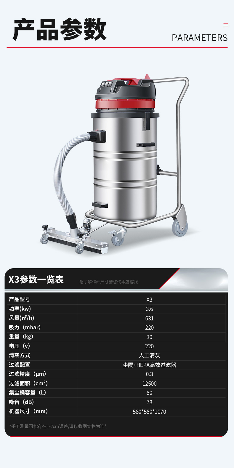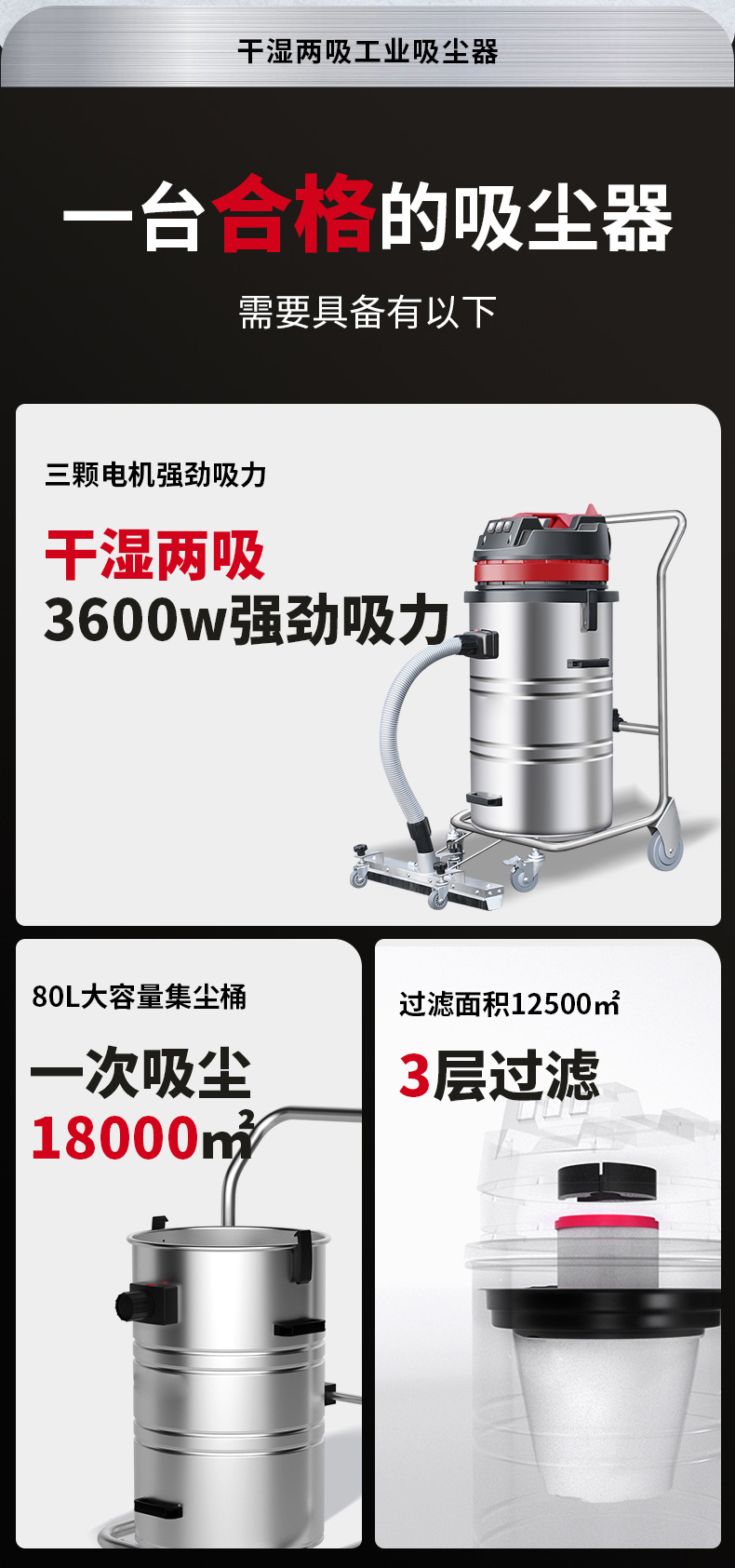 资阳坦洁380V双桶不锈钢工业吸尘器X7系列