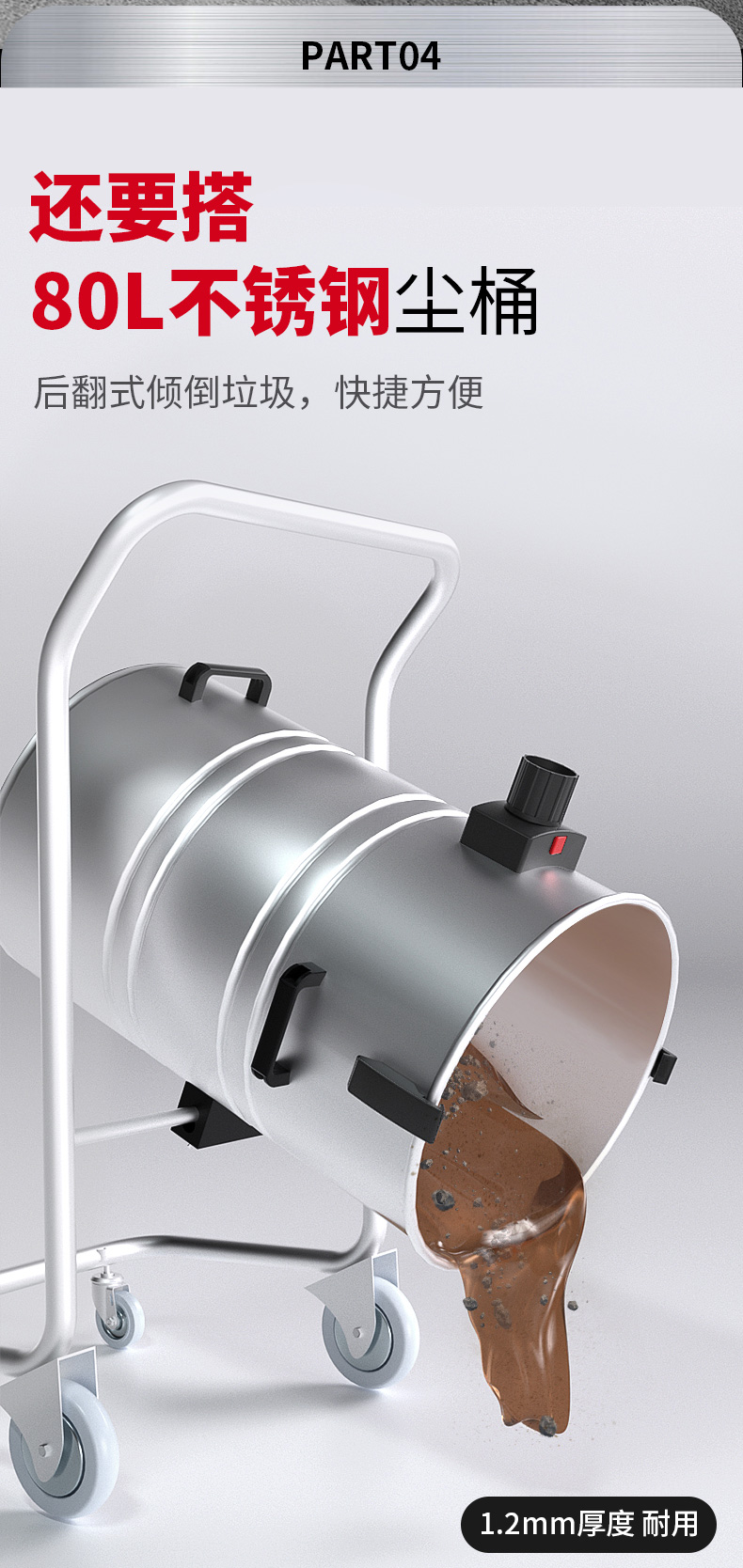 资阳坦洁380V单桶不锈钢工业吸尘器X5系列