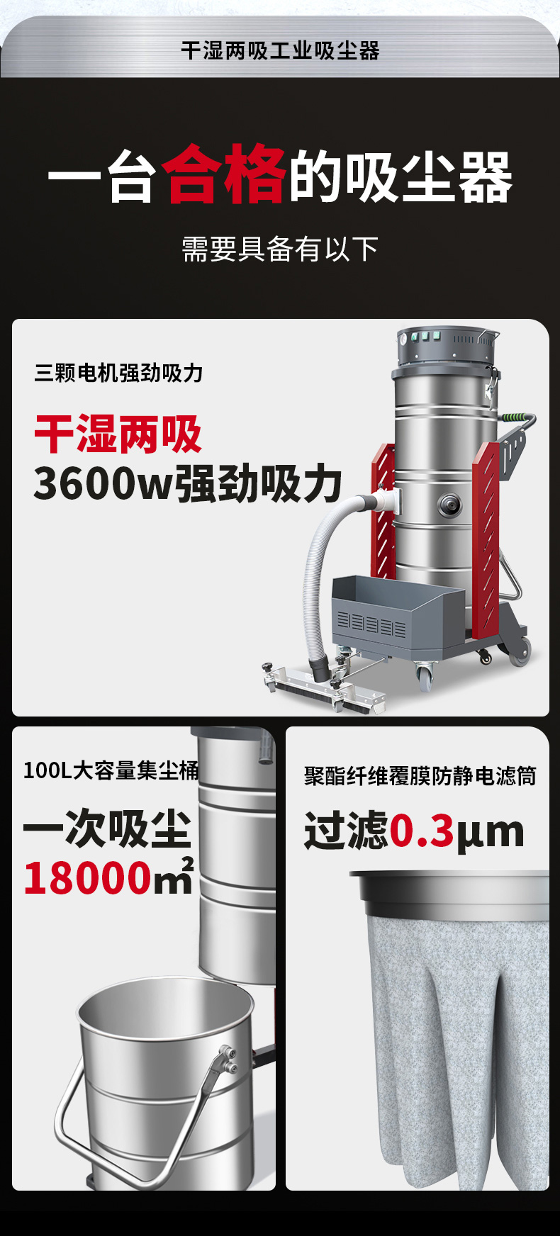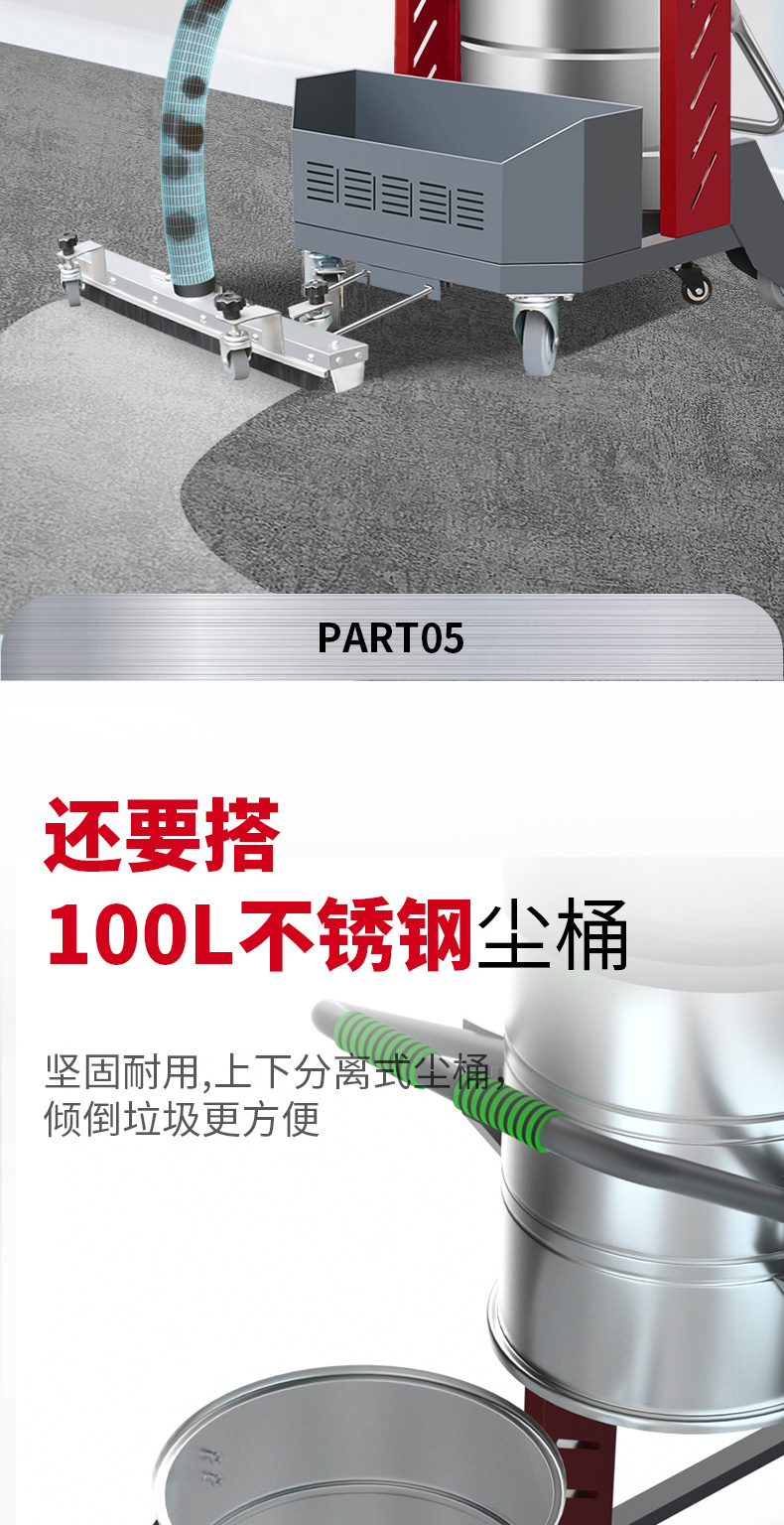 资阳坦洁380V双桶不锈钢工业吸尘器X7系列