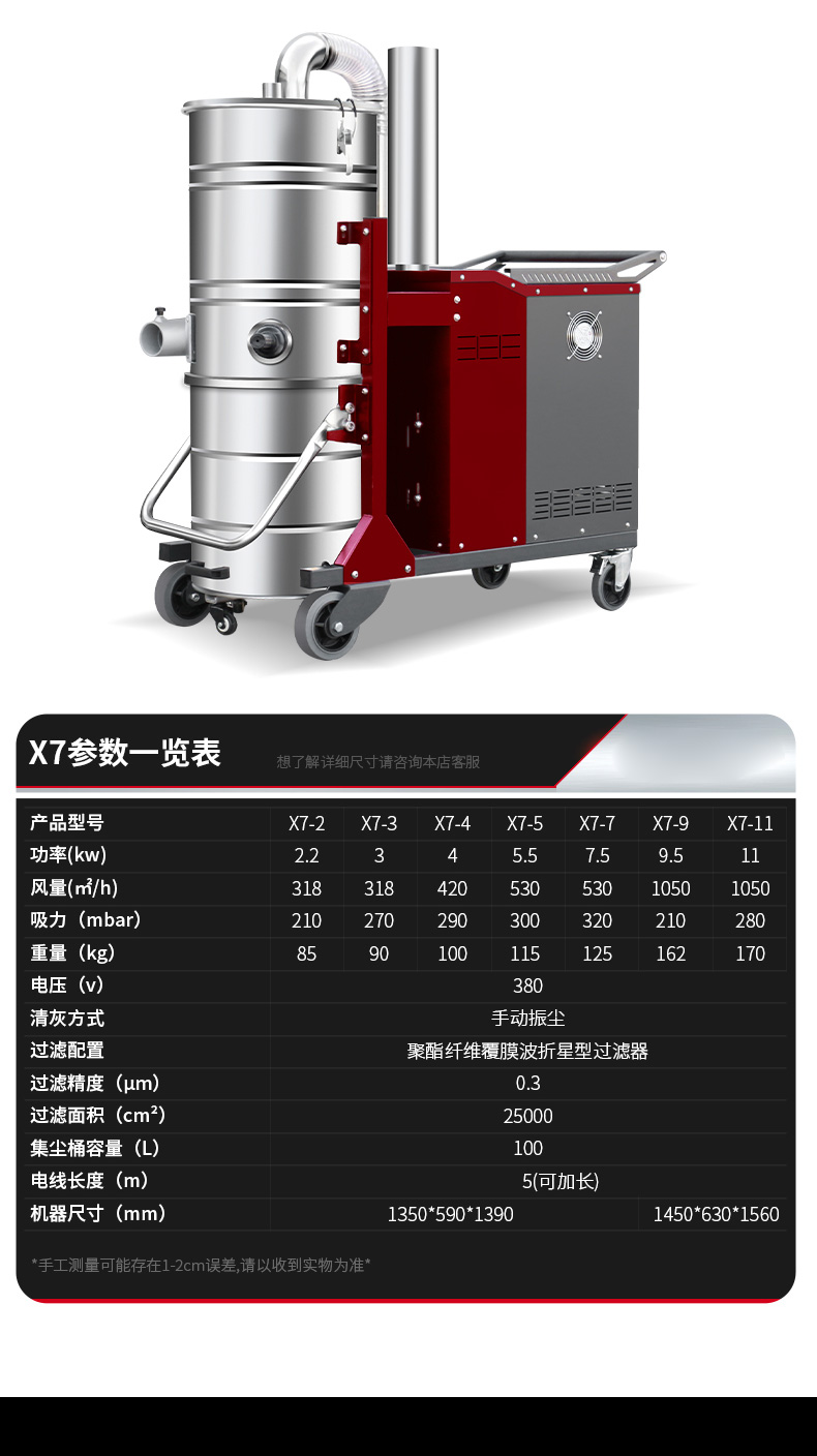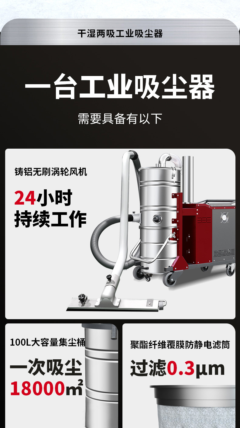 资阳坦洁380V双桶不锈钢工业吸尘器X7系列