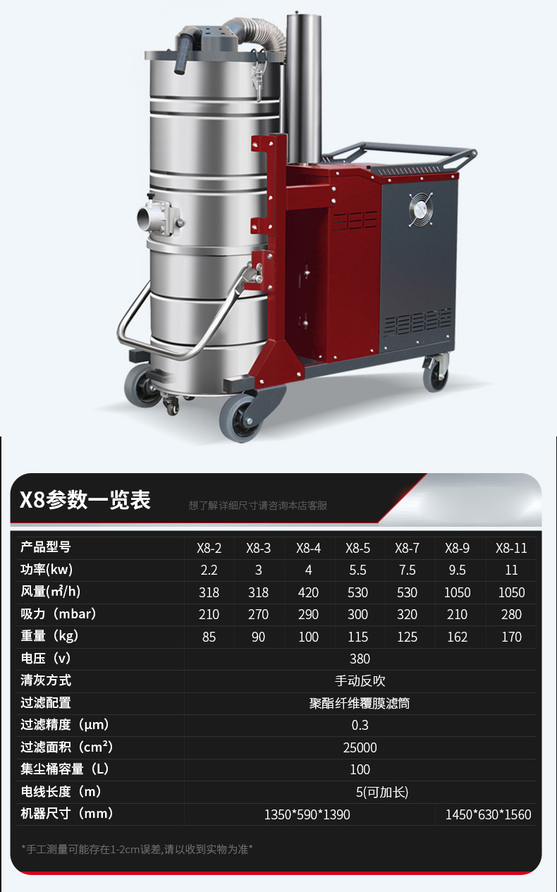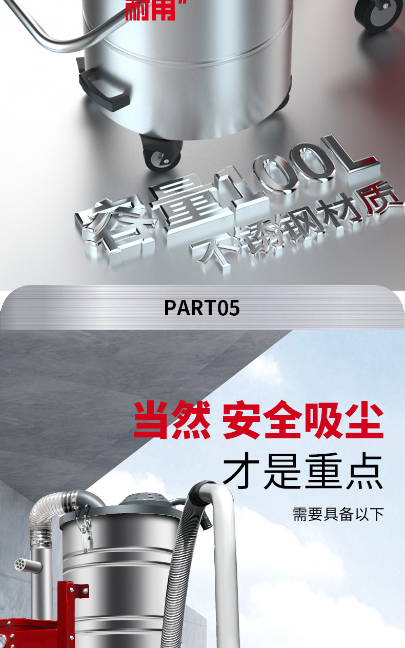 资阳坦洁380V双桶不锈钢工业吸尘器X7系列