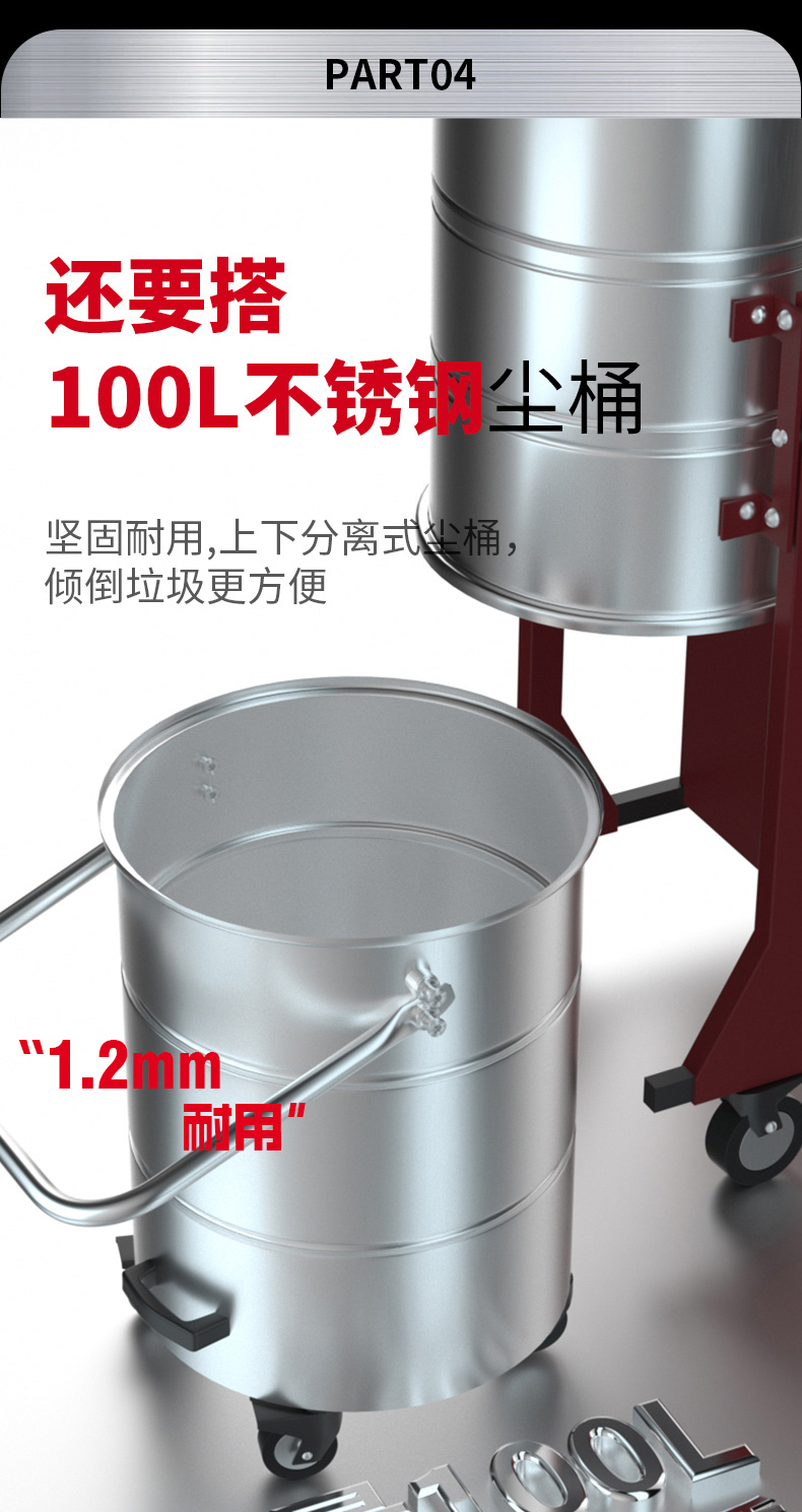 资阳坦洁380V单桶不锈钢工业吸尘器X5系列
